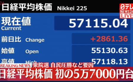 - 2026年2月3日 10:51日経平均株価 一時1700円超値上がり 米国株上昇、円安受け