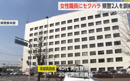 警察官2人がセクハラ…佐賀県警 女性職員の身体を触る・容姿からかう 本部長訓戒【佐賀県】