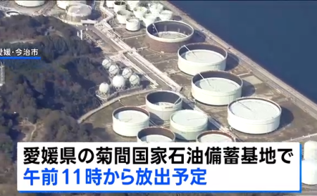 石油の国家備蓄 午前11時から放出へ 経済産業省 愛媛・今治市の菊間備蓄基地からパイプラインで隣接する民間製油所へ