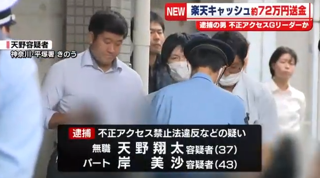 「楽天キャッシュ」に不正アクセス 約72万円を不正送金の疑いで男女2人を逮捕 男は不正アクセス繰り返す「トクリュウ」のリーダーか 神奈川県警
