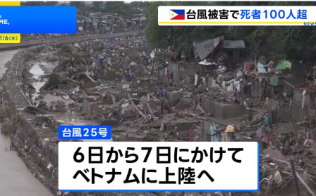 フィリピン各地で台風25号による甚大な被害が出ていて、死者は100人を超えました。 台風25号は現在、南シナ海を移動していま…