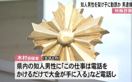 去年6月、熊本県内に住む知り合いの男性を、特殊詐欺の架け子に勧誘した疑いで、 男が29日逮捕されました。職業安定法違反の疑いで逮捕…