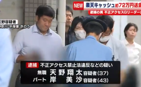 「楽天キャッシュ」に不正アクセス 約72万円を不正送金の疑いで男女2人を逮捕 男は不正アクセス繰り返す「トクリュウ」のリーダーか 神奈川県警