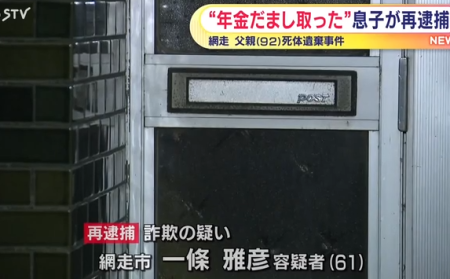 網走市の自宅に息子が92歳の父親の遺体を放置した事件で父親の年金をだまし取ったとして息子が再逮捕されました。 詐欺の疑いで再逮捕さ…