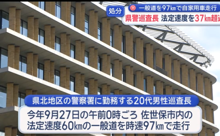 【長崎】巡査長が一般道を時速97キロで走行し「違反切符」切られる 所属長注意処分