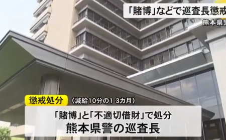 『賭博』と『不適切借財』で熊本県警の巡査長懲戒処分